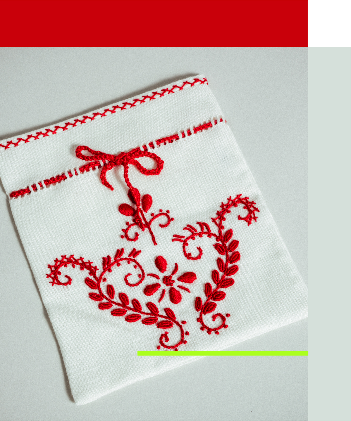 Made from linen fabric, the Almond Sachet (Saco de Amêndoas) is one of the few pieces we found decorated with this historical technique of artisanal embroidery, vibrant due to its colours, texture, and unparalleled quality standard. It is an unusual work of art, hidden in plain sight.