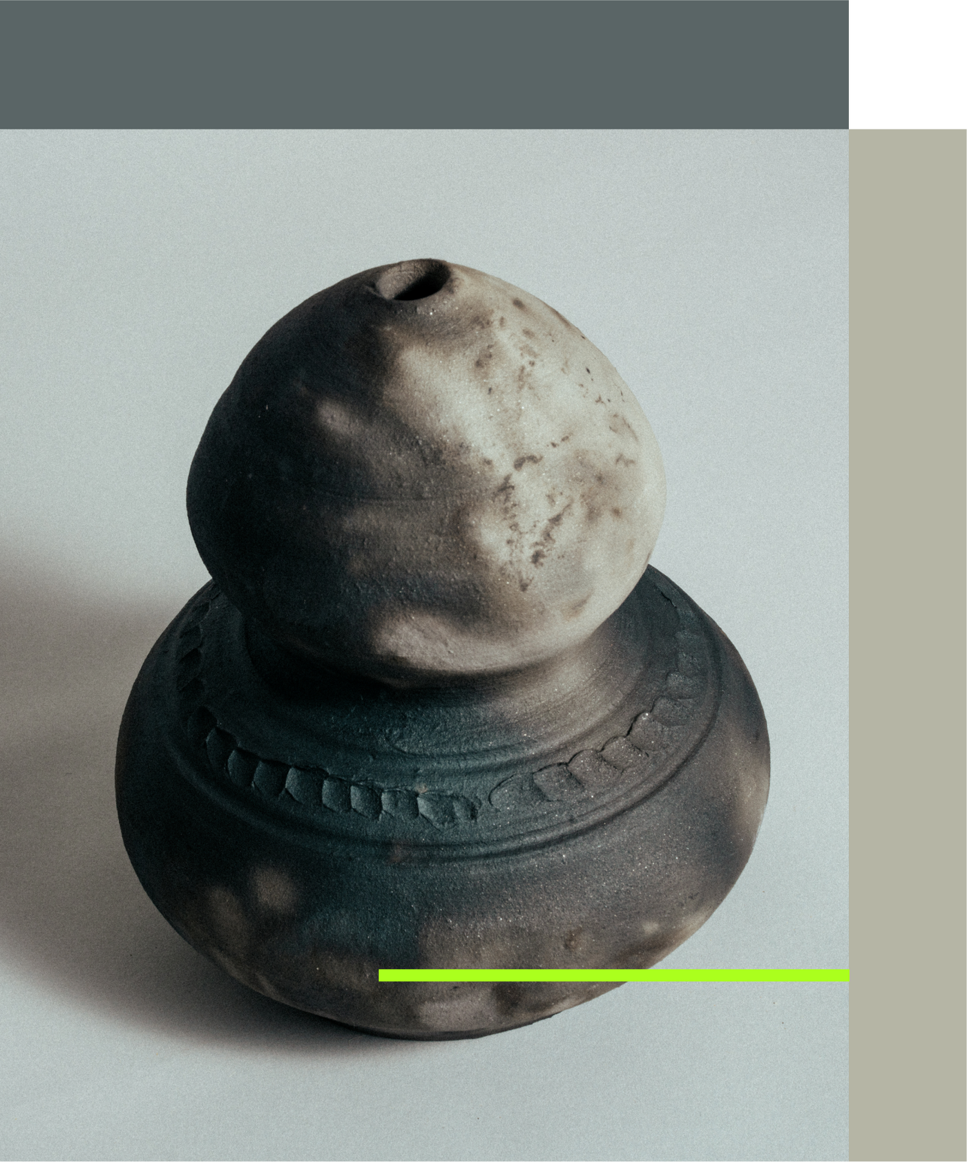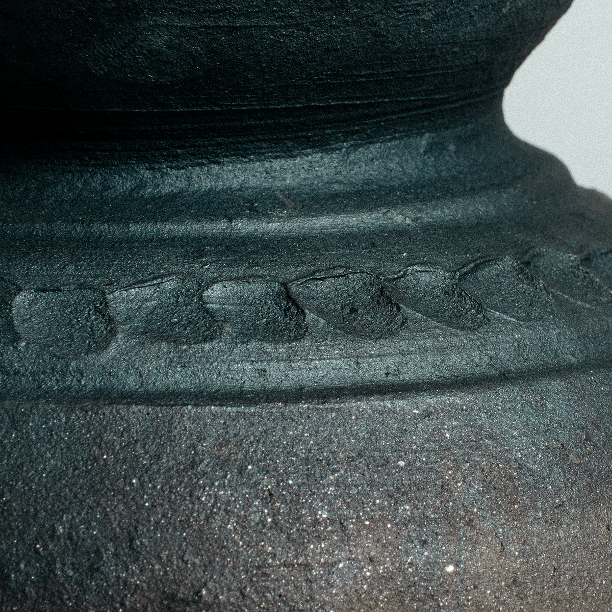 Traditional clay is baked. The dark clay of Gondar is forged. Forged from the fire of the soenga, a technique invented by local artisans in the early 17th century, where an outdoor, traditional fire bursts into flames that reach a temperature of 1000ºC, infusing the clay pieces with black smoke, giving them their historically unique hue.