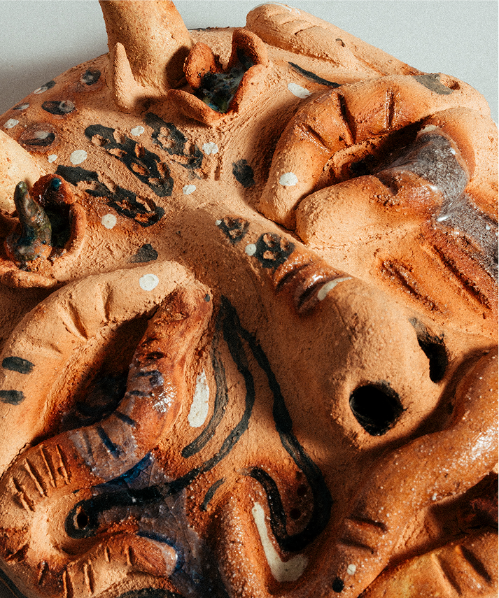 Andreia’s work emerges from a lifelong fascination with Portuguese folklore, Iberian mythology and cult movies. Drawing inspiration from Lusitanian gods, legendary creatures, David Lynch or Jodorowski, she reinvents deeply symbolic imagery as handcrafted emotion, made tangible by clay.